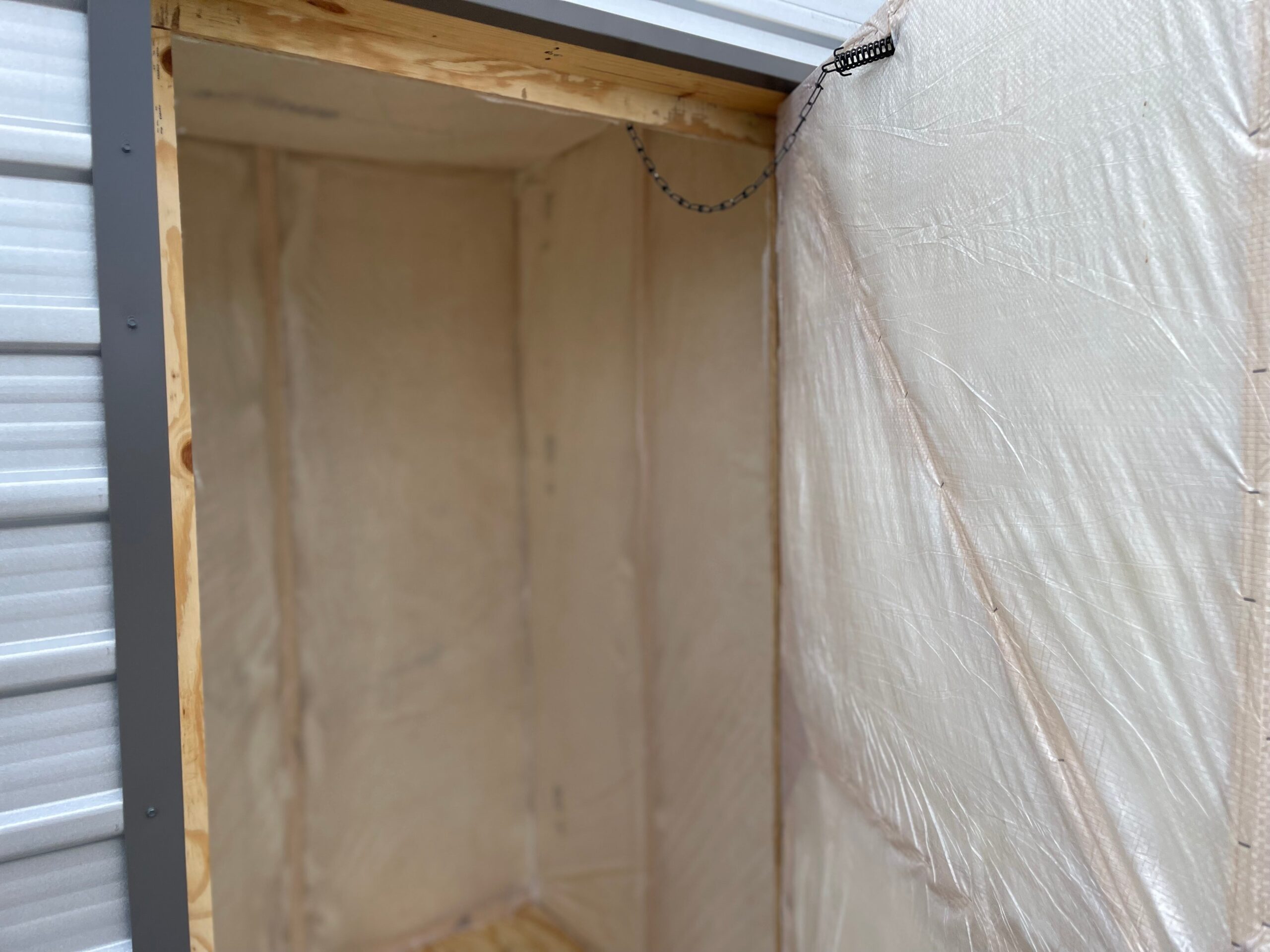 4 x 4 Specialty Building-Can be use to cover water softer equipment-Pool pump or more. Could also be used to store feed for goats, sheep, horses or chickens right out in the field. No going back and forth to the barn to get the feed. This building is insulated and house wrapped.