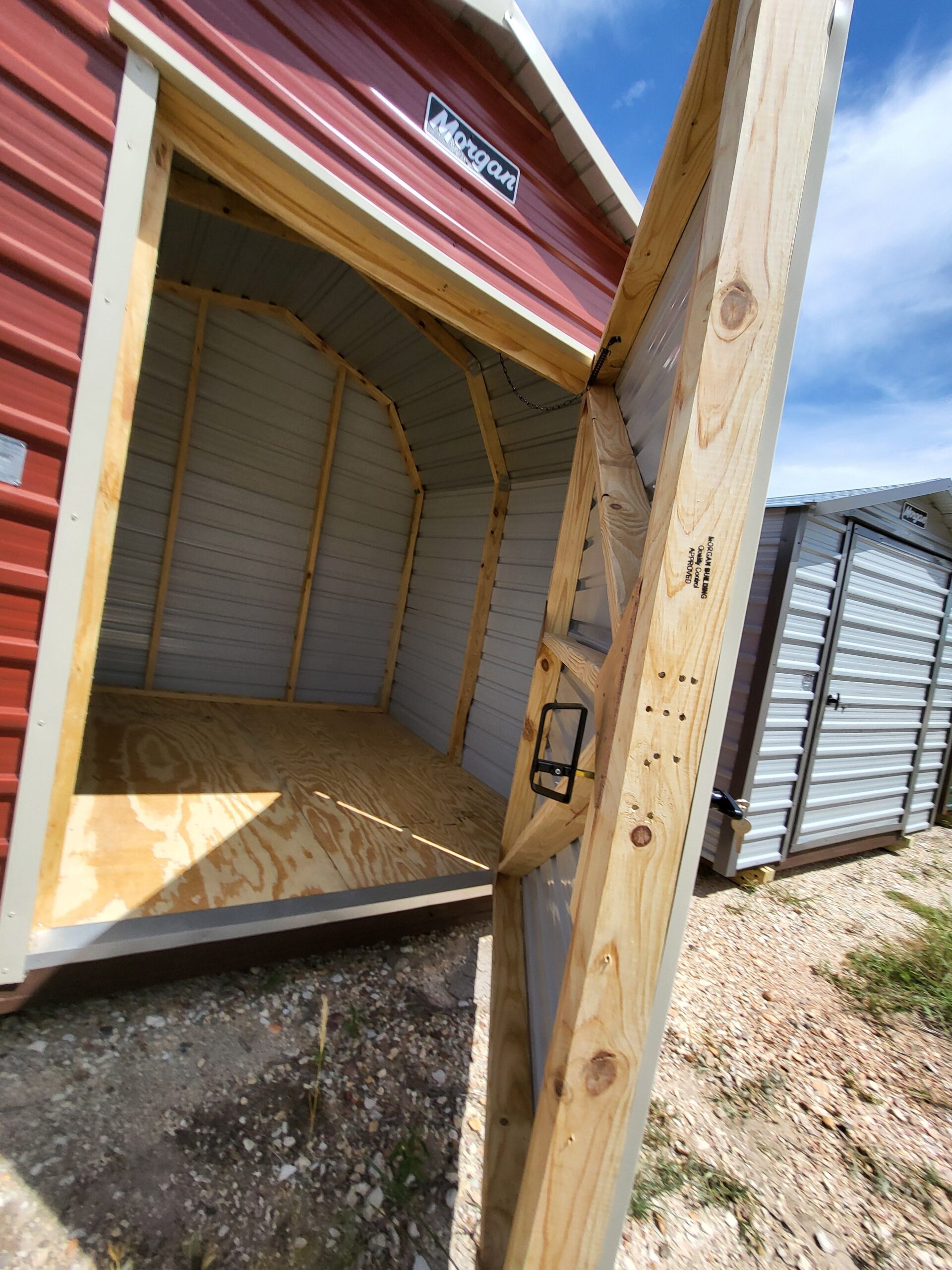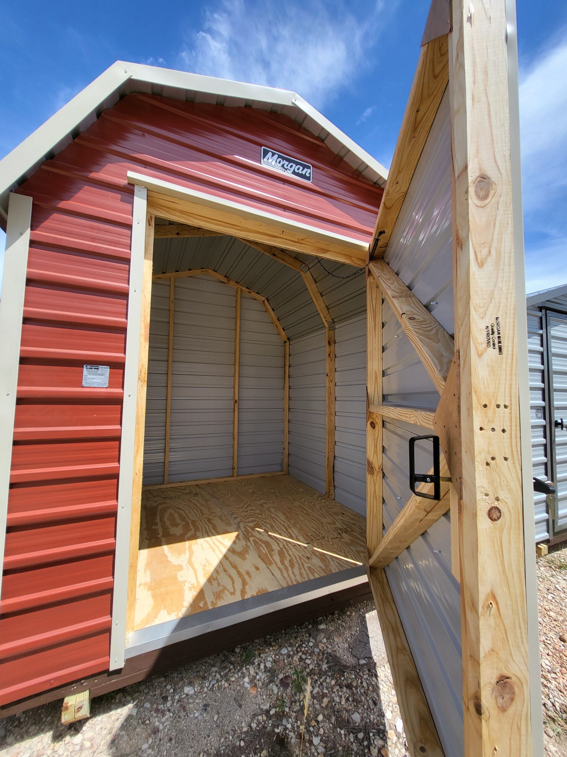 08 x 08 Classic Red Steel Barn with Almond Trim - H205627 quantity