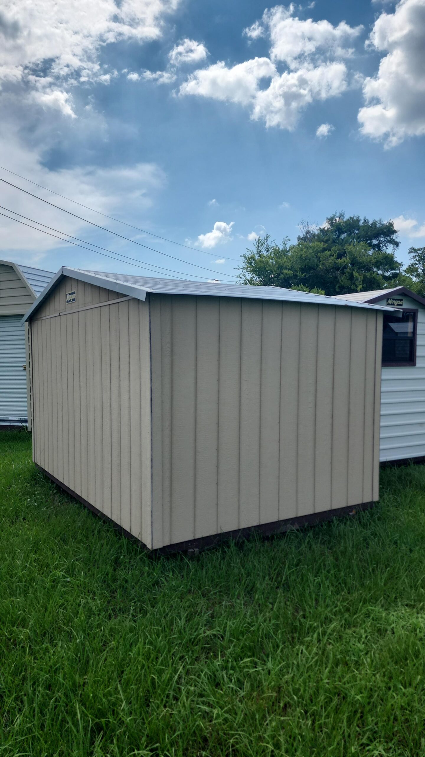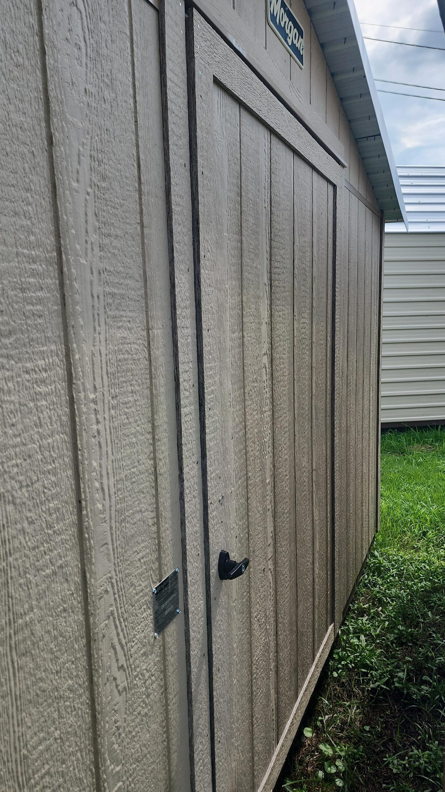 Enhance your backyard with the 08 x 12 Peak Wood Storage, a stylish and sturdy solution for efficient storage. Featuring a peaked roof, large single door, wood paneling walls, and durable steel trim, this unit blends natural charm with robust construction, ideal for any outdoor space.