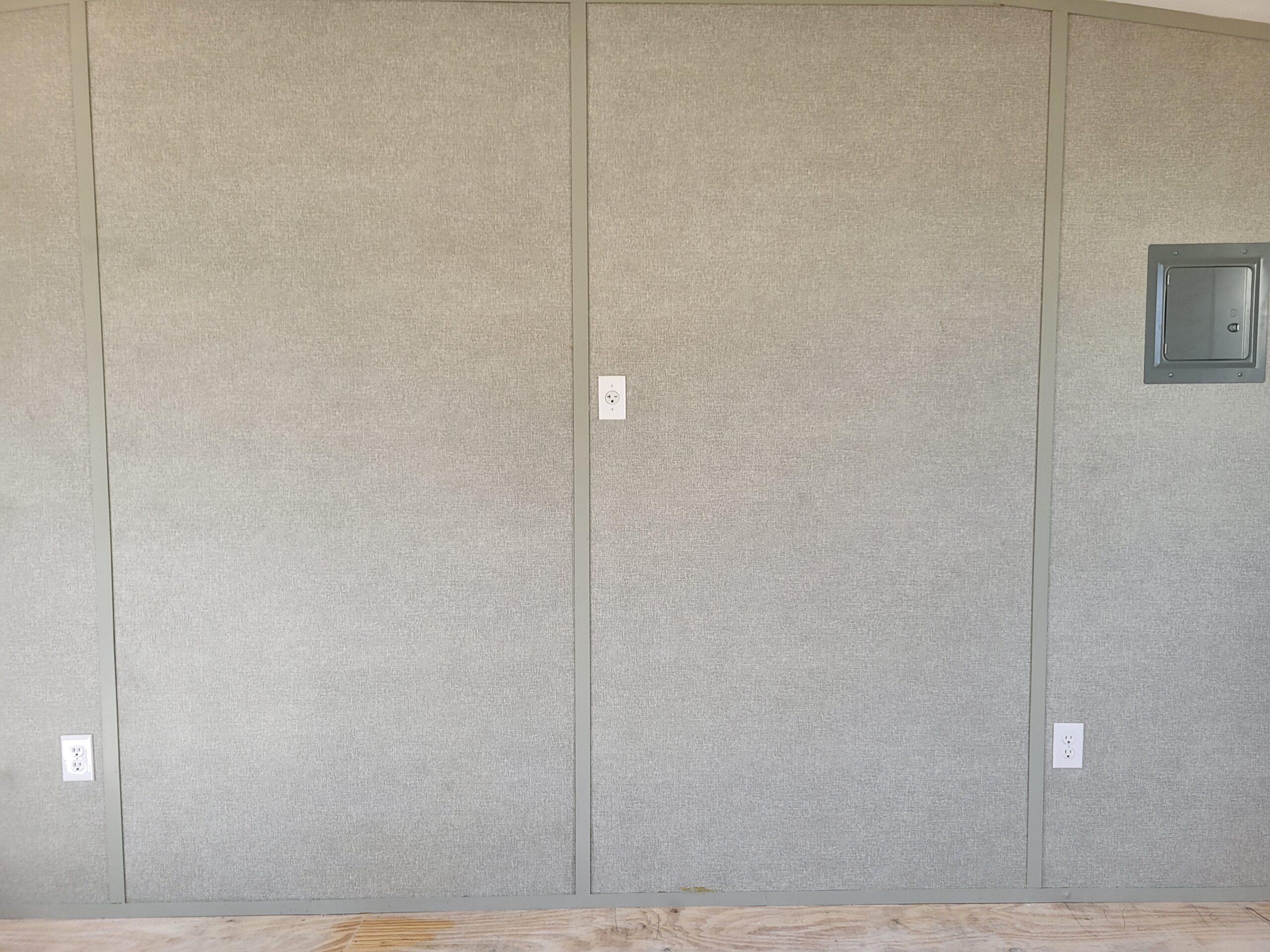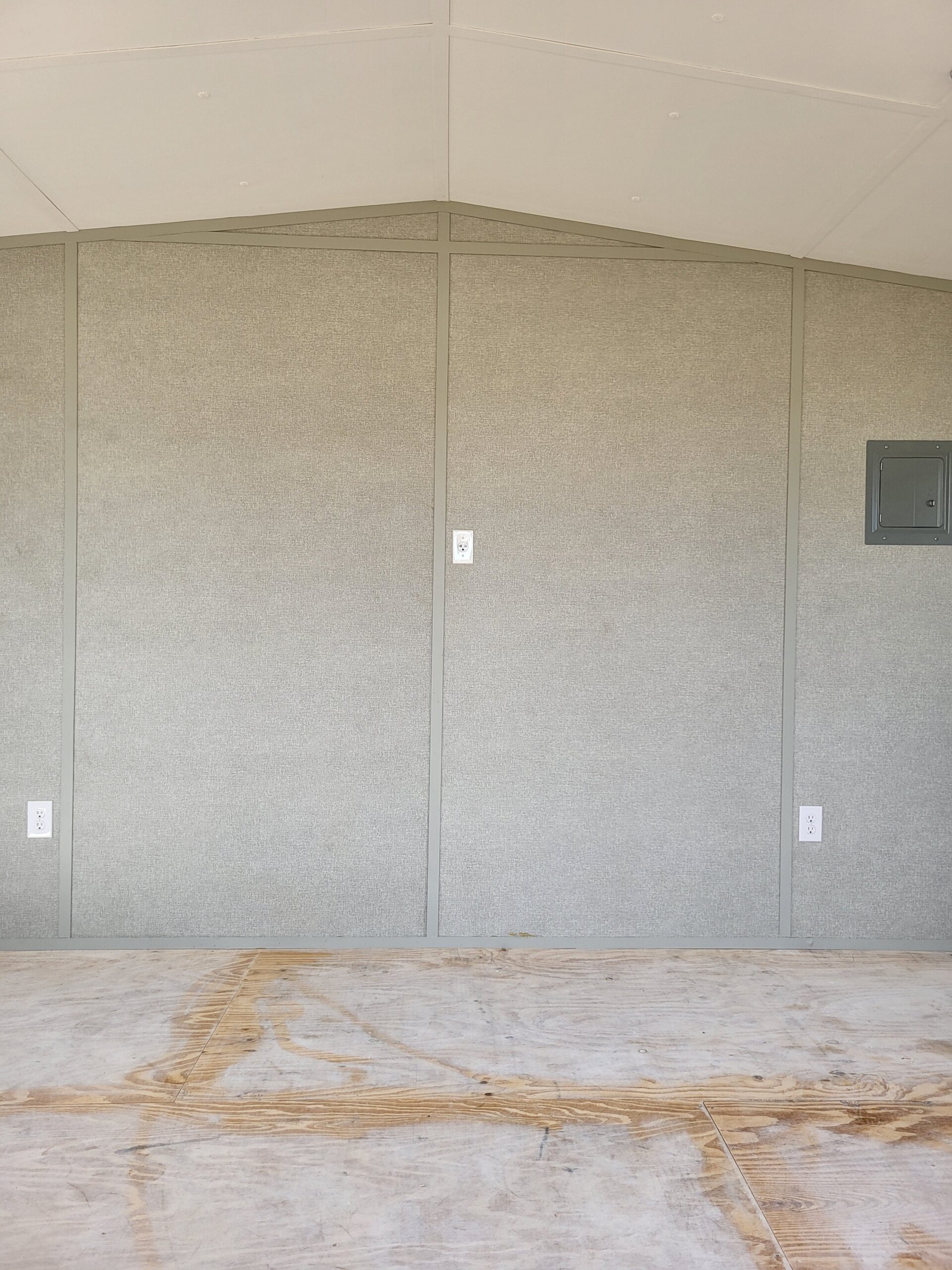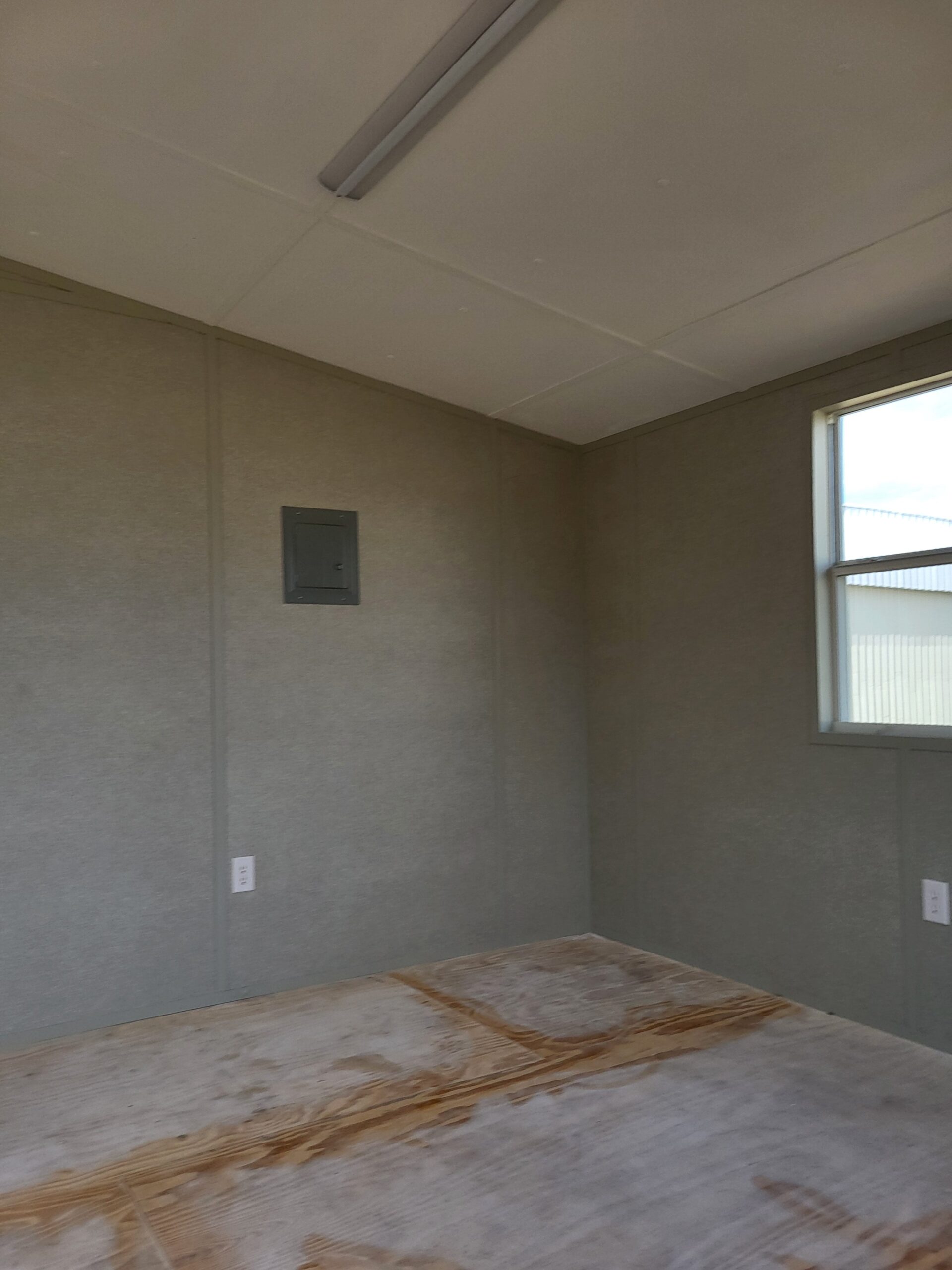 12×20 White with Dark Grey, Lined Office Building with Electrical outlets.